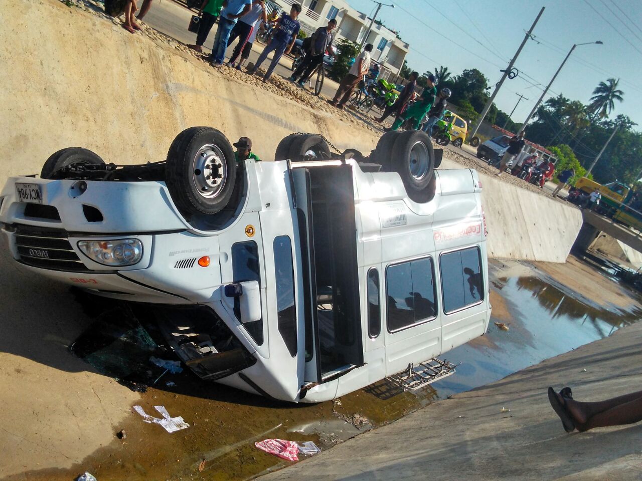 Estas son las imágenes del aparatoso accidente de una buseta en el canal pluvial del barrio Panamá, en la calle 44, en el sur de Valledupar pic.twitter.com/Dyid4dbSmI