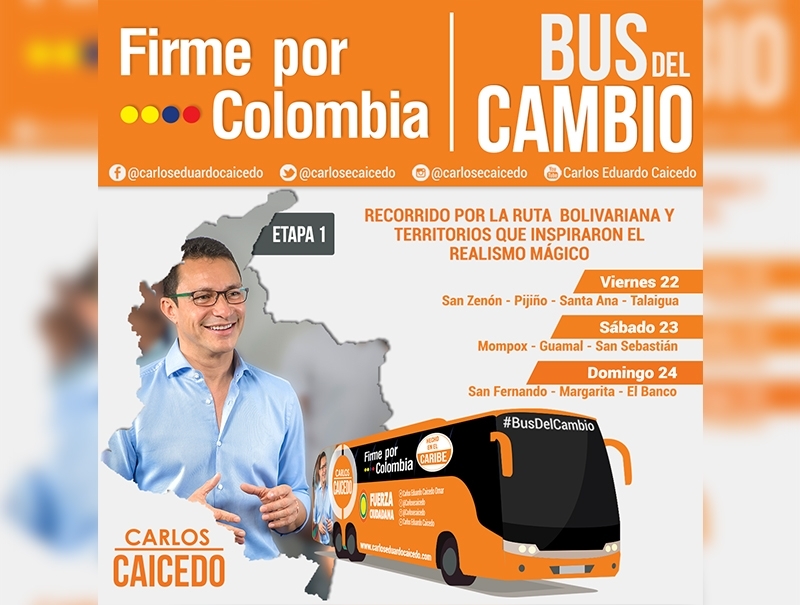 ‘Firme por Colombia’, es el nombre de la ruta que inicia, desde este fin de semana, el precandidato presidencial, Carlos Caicedo recorrerá municipios del Magdalena y Bolívar, con el propósito de presentar sus propuestas y avanzar en el proceso de recolección de firmas.