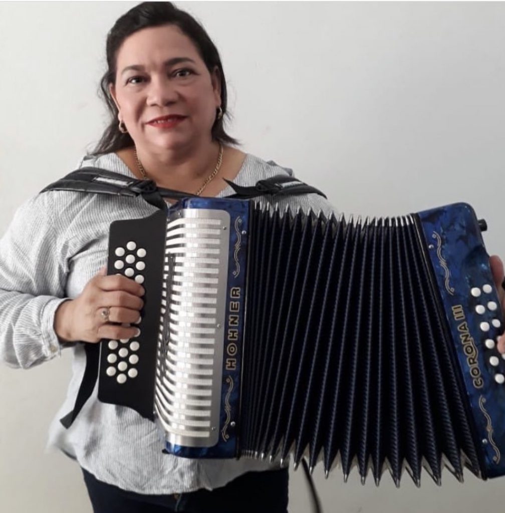 La acordeonera Maribel Cortina fue víctima de hurto por un sujeto que la intimidó con un arma de fuego, quitándole su acordodeón Hohner cinco letras, color azul.