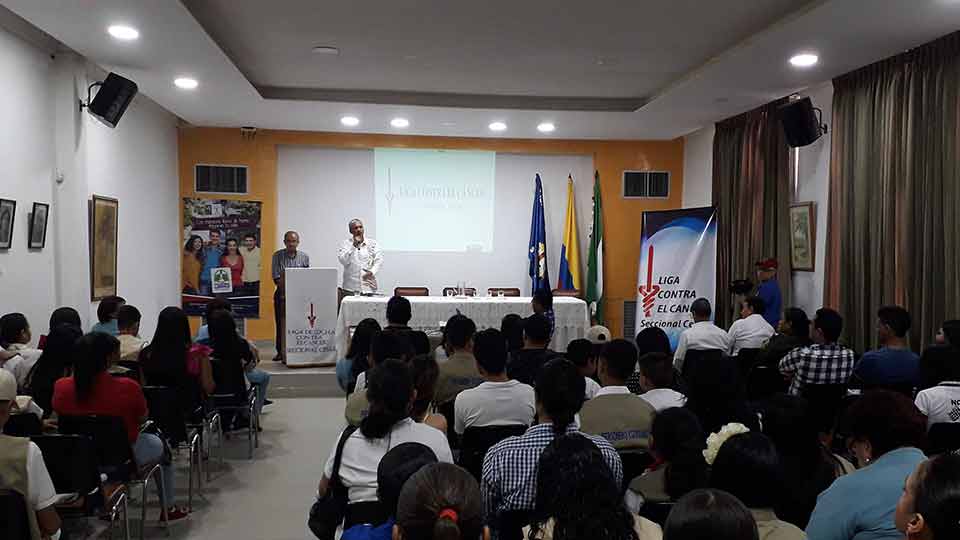 Personeros estudiantiles, líderes sociales e invitados especiales participaron en la charla para conmemorar el Día Mundial contra el Tabaquismo.