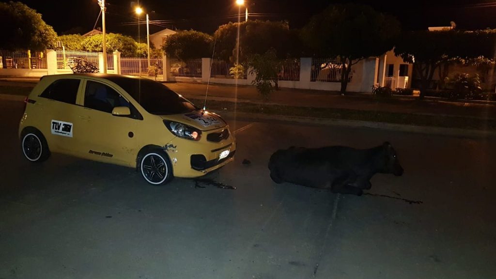 El taxi en el que se desplazaba chocó contra una vaca que estaba acostada en un sector oscuro entre las urbanizaciones Mirador de la Sierra 1 y Rosario Norte 2.